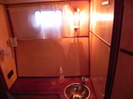 Aus der Eignerkabine betritt man den zugehörigen Toilettenraum mit Waschgelegenheit und WC.